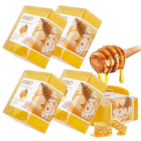 Turmeric Honey Soap Bar, Natural Turmeric Skin Soap, Turmeric Soap Bar, Turmeric Soap Bar for Face & Body, Natural Turmeric Skin Soap Wash for Dark Spots (4PCS)