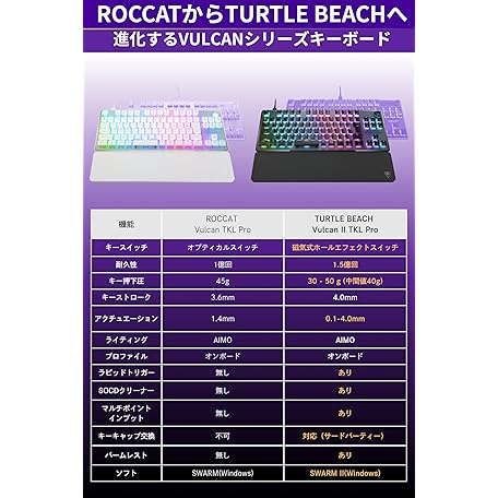 TURTLE BEACH Rapid Trigger Equipped Gaming Keyboard Vulcan II TKL Pro React-Tap (SOCD Cleaner / Lapitri Simultaneous Possible), Variable Actuation, Japanese Arrangement, Wired White/White, Hall Effect