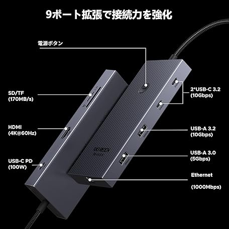Sản phẩm UGREEN Revodok Pro 9-in-1 USB-C Hub with 10Gbps Data Transfer Support 4K HDMI, Gigabit LAN, PD100W, SD/TF Card Reader Compatible with MacBook, iPad, Surface and More đang được bán với giá ưu đãi là $35.0762 tại nước Nhật.