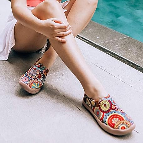 • UIN Women's Loafers Flat Canvas Shoes Slip-on Boat Shoes Floral Graffiti Shoes Beautiful Travel Shoes No Heels Lightweight Comfortable