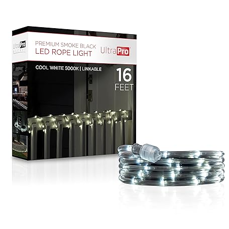 UltraPro LED Rope Light, 16ft Premium Smoke Black Rope, Cool White Light 5000K, Indoor/Outdoor, Discreet, Elegant, Flexible, Linkable, Durable Rope Light Outdoor, 67117