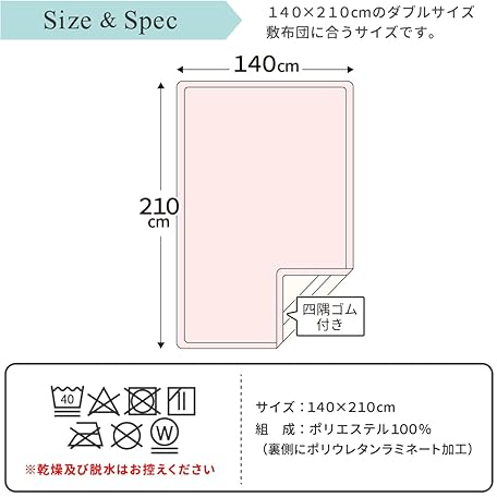 Thông tin sản phẩm un doudou 10-24W-PI Waterproof Bedwetting Sheet, Double Size, 55.1 x 82.7 inches (140 x 210 cm), Absorbent and Quick Drying, 100% Polyester, 4 Corner Elastic Included, Waterproof Sheet, Pink