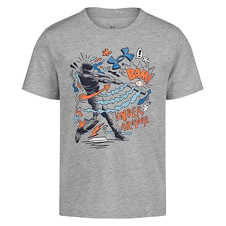 Under Armour Boys' Short Sleeve Shirt, Crewneck, Lightweight and Breathable, Gray Doodle, 2T