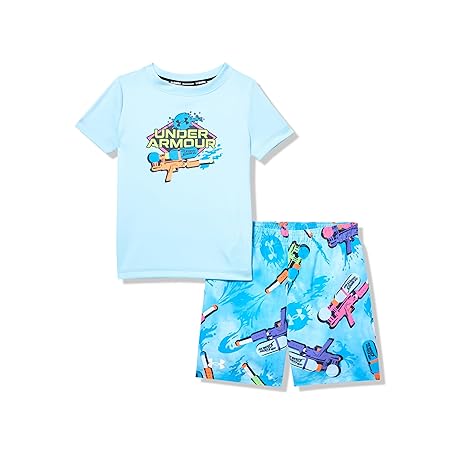 Under Armour Boys' Swim Volley Set, Sleeve Shirt & Matching Shorts, Lightweight & Breathable, Green, Small, Medium, Large