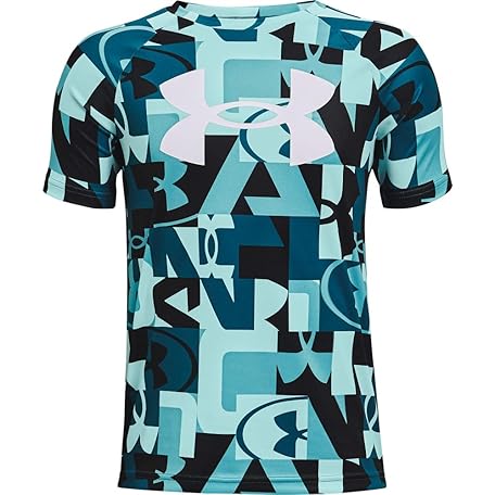 Under Armour boys Tech Big Logo Printed Short-Sleeve T-Shirt, Breeze (441)/Black, Youth X-Small