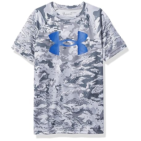 Under Armour boys Tech Big Logo Printed Short-Sleeve T-Shirt, Pitch Gray (012)/Tech Blue, Youth X-Small
