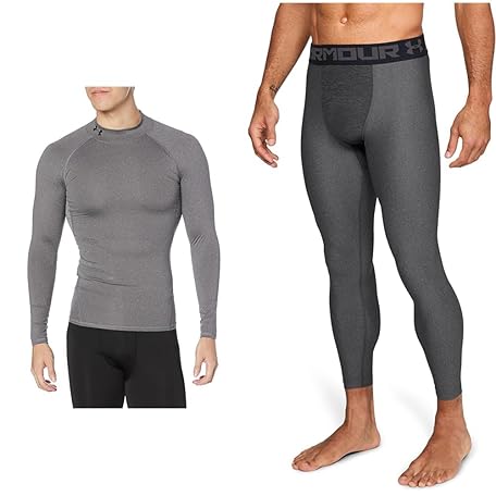 Under Armour Men's UA HeatGear Armour Training Base Layer Long Sleeve Mock, Charcoal Light Heather Black/Carbon Heather