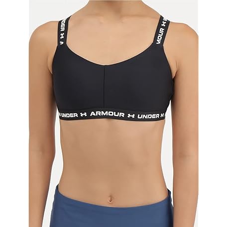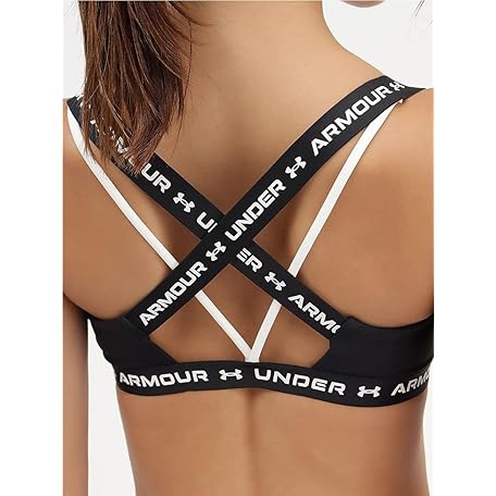 Under Armour Women's UA Crossback Low Training Sports Bra, Black / White / White