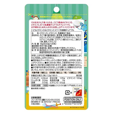 Thông tin sản phẩm Unimat Riken Children's Vitamin D & Vitamin C KT-11 Lactic Acid Bacteria Chewable, Grape Flavor, 30 Tablets