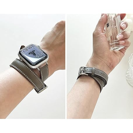 [Universal Fit] Slim Band Compatible with Apple Watch Band 38mm 40mm 42mm 41mm 45mm 44mm 49mm Apple Watch Band Leather Double Tour iWatch Series 8 7 6 SE 5 4 3 21 Accessories Thin Replacement Strap