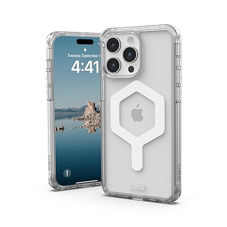 • URBAN ARMOR GEAR UAG iPhone 15 Pro Max Case 6.7" Plyo Ice/White Built-in Magnet Compatible with MagSafe Charging Heavy Duty Anti-Yellowing Transparent Clear Drop Protection Cover