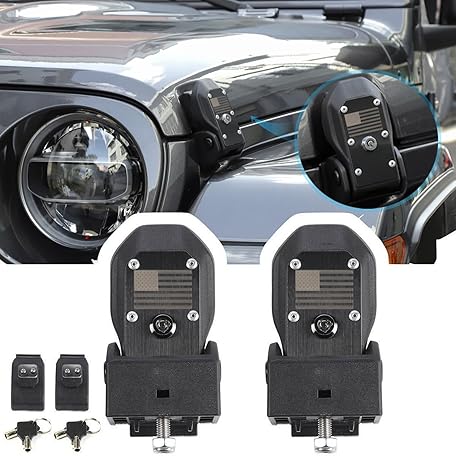 US Flag Car Anti-Theft Hood Latch Catch 2018 2019 2020 2021 2022 2023 2024 Jeep Wrangler JL JLU 4XE Rubicon Sahara Sport Gladiator JT With Lock Key