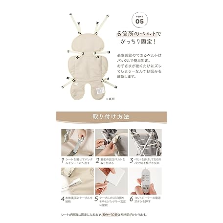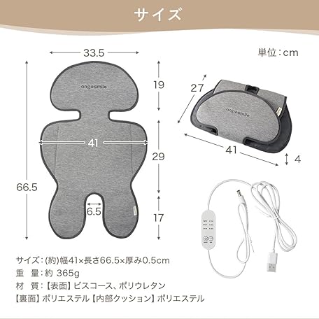 アンジュスマイル ベビーカーシート冬 寒さ対策 電動 USB電源 ベビーカー チャイルドシート ベビー 子供 赤ちゃん 0ヶ月 ~ 6歳 イージーコンフィーサーモ ちゃいなび グレー