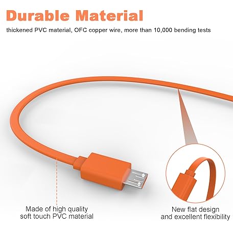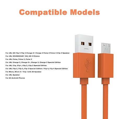 • マイクロUSB充電充電ケーブル 電源コード 交換用 JBL Flip 2 JBL Flip 3 JBL Flip 4 Charge 3 スピーカー Android携帯電話に対応 (オレンジ)