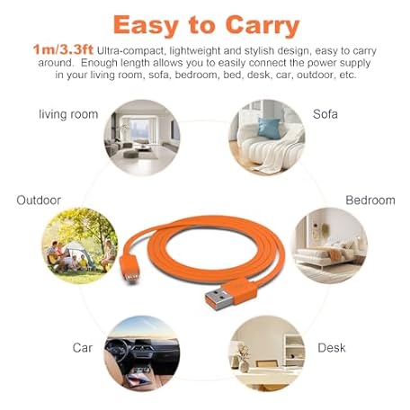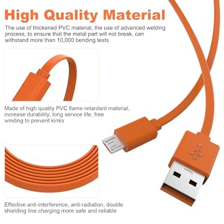 • USBマイクロケーブルコードワイヤー。JBL Flip 4、Flip 3、Flip 2、Charge 2+、Charge 3、Pulse 2、Pulse 3、Clip Plus、Xtreme、Go 2 Bluetoothスピーカーに対応 (オレンジ、3.3フィート)。