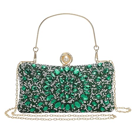 [uxcell] Women Evening Bag Sparkling Crystal Rhinestone Clutch Bag Handbag with Two Chain Straps for Wedding Party Evening Weekend Green