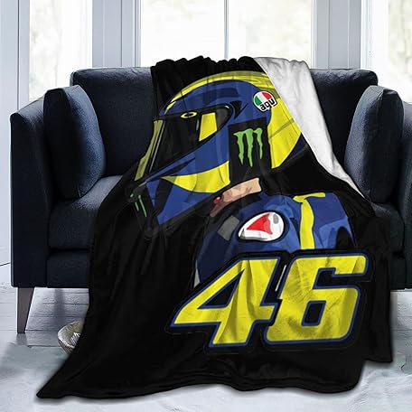 Valentino Rosi Blanket, Animation, Lightweight, Blanket, Flannel, Washable, Anti-static, Warm, Soft, Fluffy, For All Seasons, Merchandise, Characters, Gift, 49.2 x 39.4 inches (125 x 100 cm)