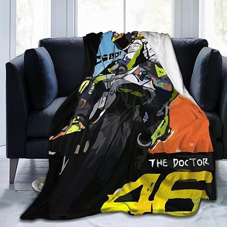 Valentino VR46 Animated Blanket, Lightweight, Flannel, Washable, Anti-static, Warm, Soft, Fluffy, All Seasons, Popular, Cute, Gift, 49.2 x 39.4 inches (125 x 100 cm) a2