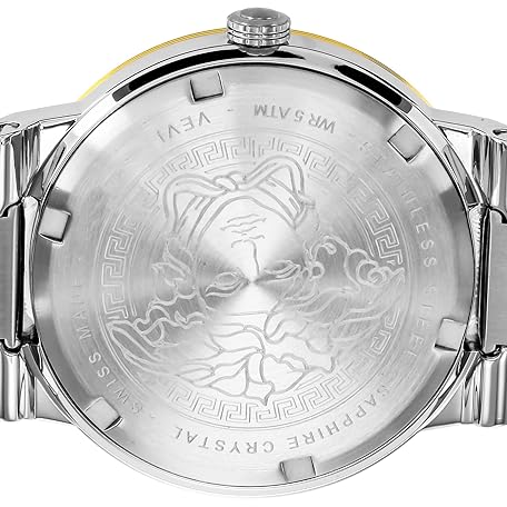 Thông tin sản phẩm Versace Men's Greca Logo Wristwatch, Stainless Steel, Sapphire Glass, Quartz, 1.6 inches (41 mm), Swiss Watch VEVI, green/gold, Bracelet Type