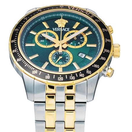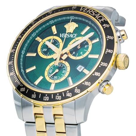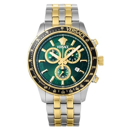 Versace VEZCA0524 Men's Casual Watch, Sports Chrono, Silver, green, Bracelet Type