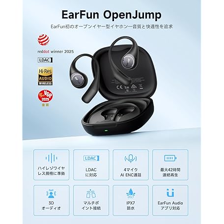 Sản phẩm VGP 2025 Gold Award: EarFun OpenJump Open Ear Earphones, Bluetooth Earbuds, LDAC Compatible, Running Earphones, No Blocking Earphones, Up to 42 Hours of Continuous Playback, 3D Audio, Multipoint đang được bán với giá ưu đãi là $49.9547 tại nước Nhật.