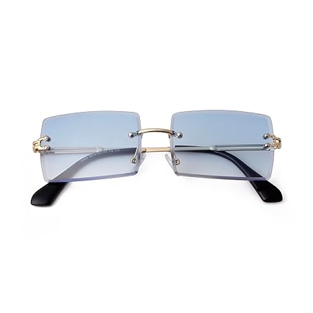 VIA LEECA 縁なし長方形サングラス レディース メンズ ティント フレームレス スクエアメガネ ヴィンテージ 透明 アイウェア, ブルー, Small
