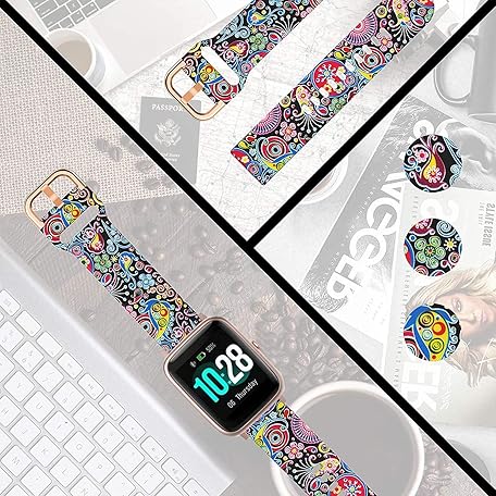 ViCRiOR 19mm Wide Compatible with Veryfitpro ID205L Smart Watch Quick Release Soft Silicone Fade Resistant Pattern Print Floral Replacement Band for Uwatch 3 Willful SW021 ID205L/SW025 ID205S