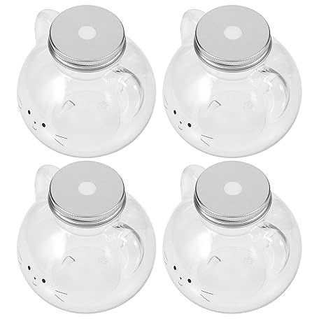 • VILLCASE 500ml透明PET製猫の頭形ジュースボトル4個セット 冷たい飲み物 ミルクティー対応 パーティー用再利用可能ドリンク容器