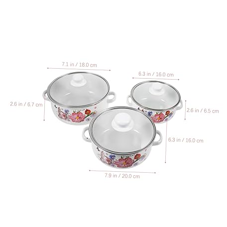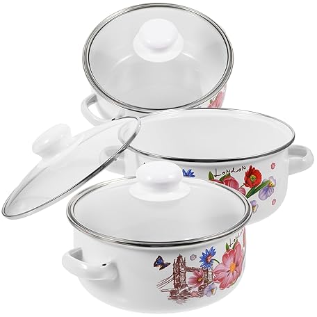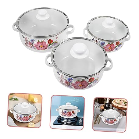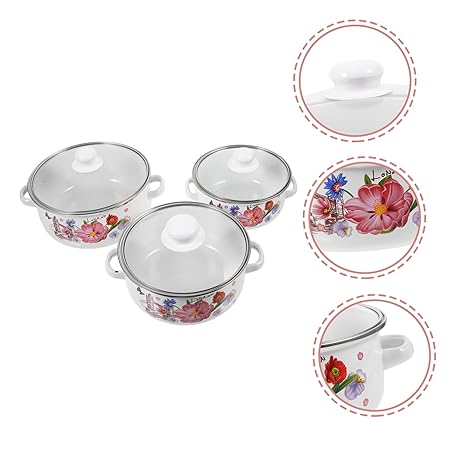 Sản phẩm VINTORKY 3個エナメルストックポット 両手鍋 蓋付きスープポット レトロ調理鍋 繊細な模様の 家用 キャンプ料理用 平らな底で均等加熱 đang được bán với giá ưu đãi là $23.0644 tại nước Nhật.