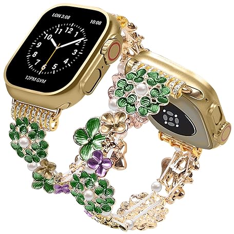 VIQIV ドレッシーブレスレット Apple Watchバンド レディース 38mm 40mm 41mm 42mm 44mm 45mm 46mm 49mm 伸縮性 キュート ファンシー キラキラ メタル ストレッチリストバンド ストラップ スマートウォッチバンド iWatch Ultra 2/Ultra Series 10/9/8/7/6/5/4/3/2/1/SE用 (グリーン L)