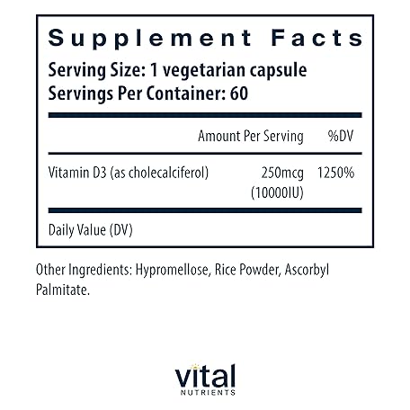 Thương hiệu Vital Nutrients là cái tên nổi tiếng được rất nhiều khách hàng trên thế giới chọn lựa. Với kiểu dáng đẹp mắt, sang trọng, sản phẩm Vital Nutrients Vitamin D3 10000 iU 60 Capsules là sự lựa chọn hoàn hảo nếu bạn đang tìm mua một món cho riêng mình.