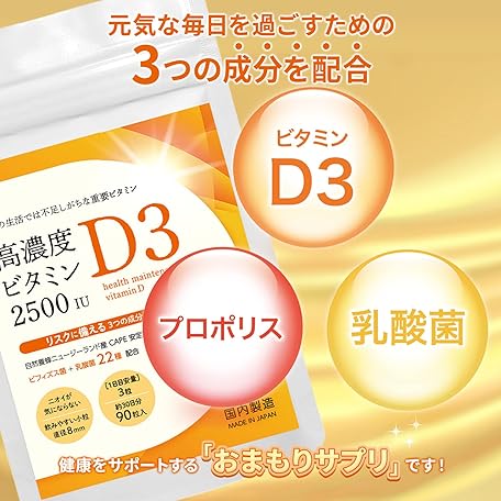 Sản phẩm Vitamin D Supplement, High Concentration, 2,500 IU, Derived from Wool, Vitamin D3, Propolis, Lactic Acid Bacteria, Vitamin D3, GMP, Made in Japan, Concentration, Memory Measures, Minori Grain, Approx đang được bán với giá ưu đãi là $11.3142 tại nước Nhật.