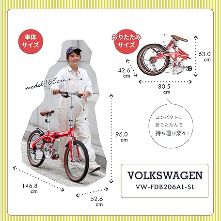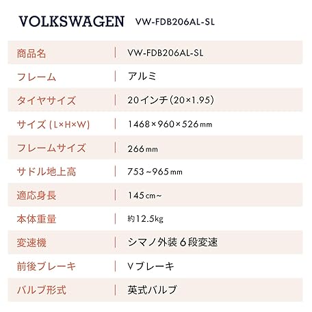 Sản phẩm Volkswagen VW-FDB206AL Bicycle Folding Bicycle, 20 Inches, Lightweight, Shimano 6 Speed Shifter, Aluminum Frame, Folding, Street Ride đang được bán với giá ưu đãi là $276.3695 tại nước Nhật.