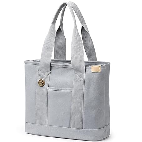 • Volsha Canvas Tote Bag, A4 Large Capacity, Plain Shoulder Bag, Campus Tote Canvas, Unisex, Work or School Commutes, B Gray