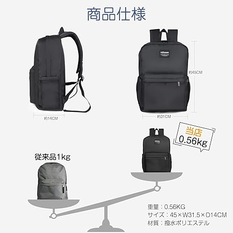 Thông tin sản phẩm [Vulmoon] リュック メンズ おしゃれ バックパック 通学 軽量 大容量 防水 15.6インチ りゅつく カジュアル タウンリュック 防災 男女兼用