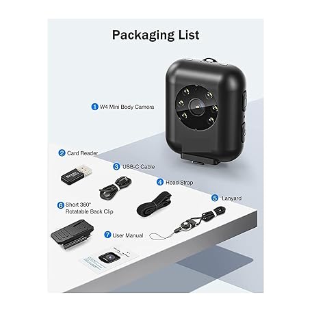 Thông tin sản phẩm Small Camera, Camcorder, Body Camera, Voice Recorder, Video Recorder, W4 Body-Mounted Camera, 64 GB, 1080P, Camcorder, 950 mAh, Battery, 5 Hour Video Shooting, Mini Sports Camera with Head Strap,