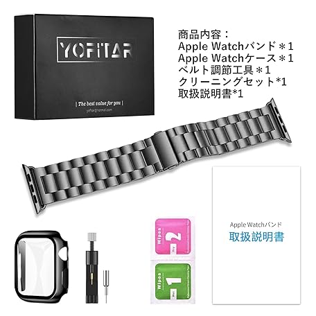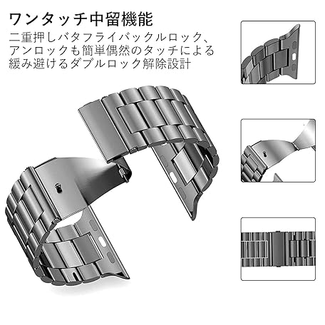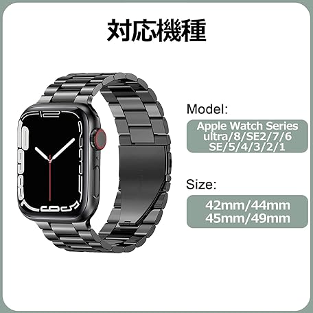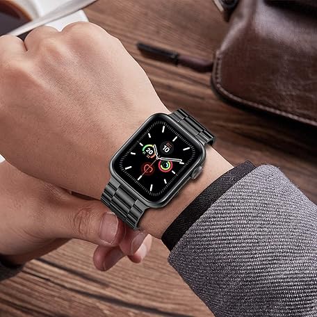 Watch Band for Apple Watch, Protective Case, Stainless Steel, Replacement Band, Compatible Series: Ultra3/Ultra 2/Ultra/11/10/9/8/7/SE3/SE2/6/SE/5/4/3/2/1, (44mm) Length Adjuster, Black