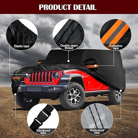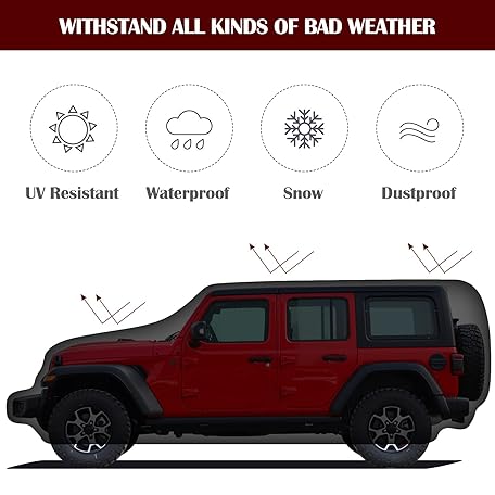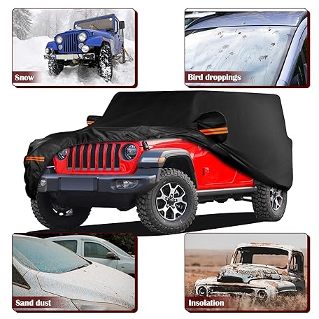 • Waterproof Car Cover Outdoor Waterproof Sun Rain Snow Hail Protection Driver Door Zipper for Jeep Wrangler 4 Door 2006-2023 JK JL