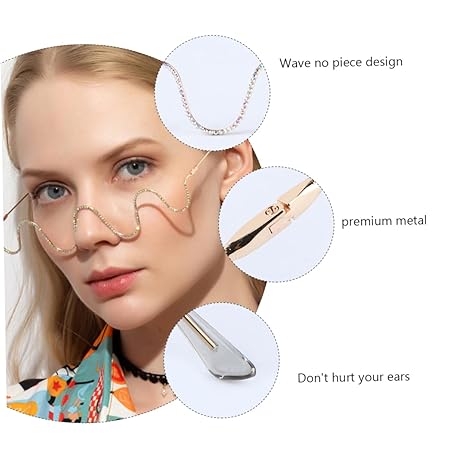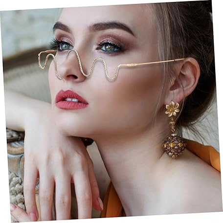 [WATIIFUFU] Wave Flakes Decorative Glasses Frame, Female Parts, Wave Glasses Prop, Decorative Glasses Frame, Fad (fad), Party, Glasses, Outdoor Glasses Prop, Diamond Rim Glasses Ornament, Metal