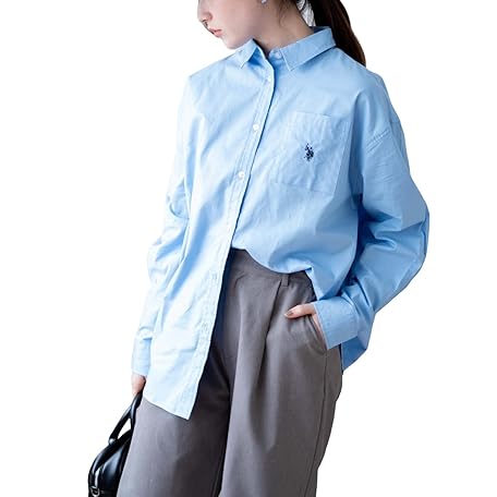 WEGO(ウィゴー) Special Order, U.S. Polo Assn. Big Shirt, Large, Loose, Logo, Embroidered, Plain, Outerwear, Spring, Summer, Autumn, Winter Women's