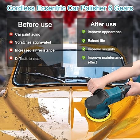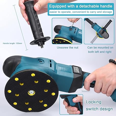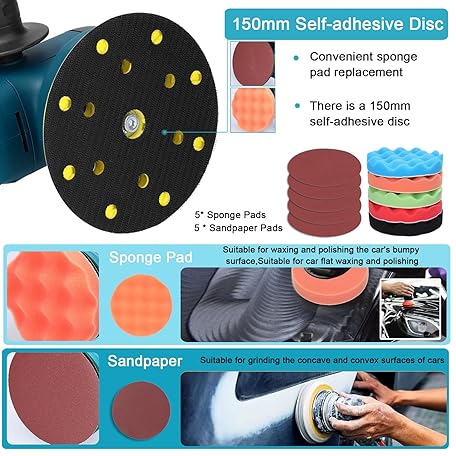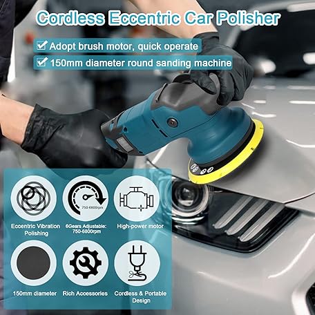 Weytoll Polisher Rechargeable, Compatible with Makita 21V Battery, 6 Levels Adjustable, 750-6800 RPM Constant Rotation Speed, Small, 5.9 inches (150 mm), Random Rechargeable Polisher, Car Polisher,