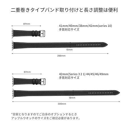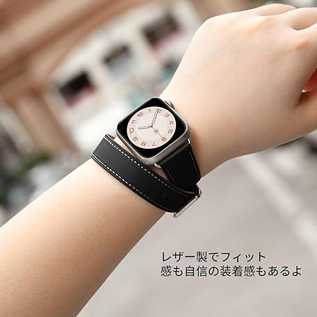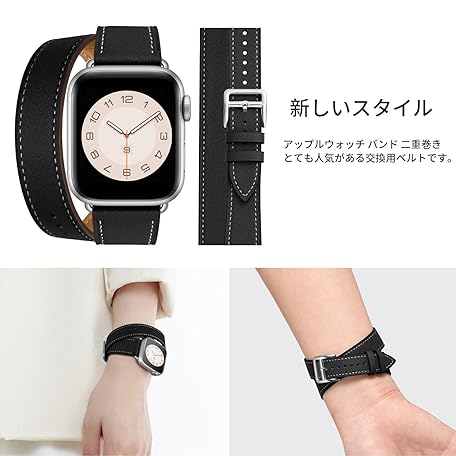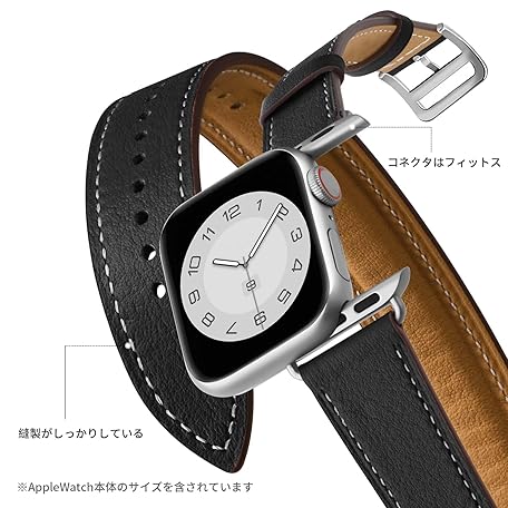 • WFEAGL Apple Watch Compatible Band, Genuine Leather, iWatch Series 6 / 5 / 4 / 3 / 2 / 1, SE, Leather Band, Replacement Strap for Sport Edition, 1.5 - 1.6 inches (38 - 40 mm), Double Winding (Black + Silver Adapter)
