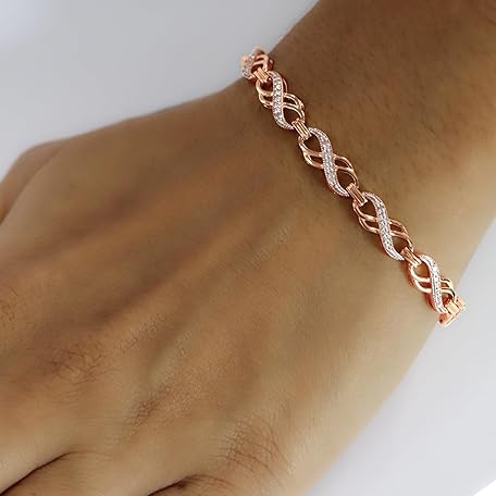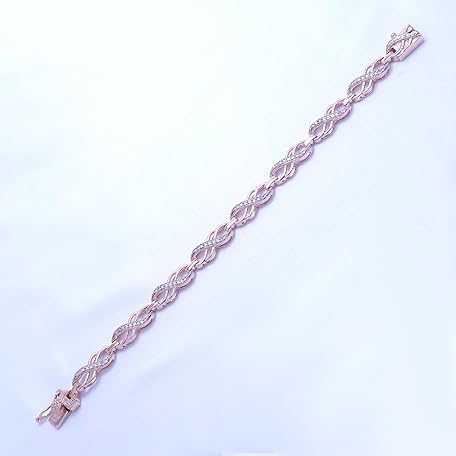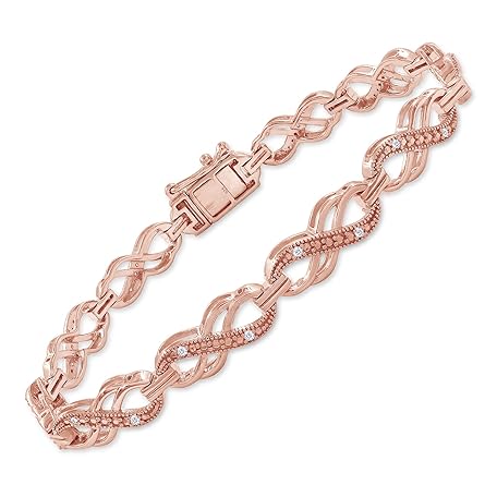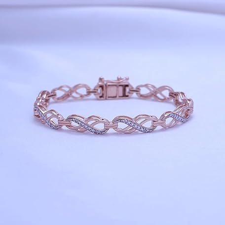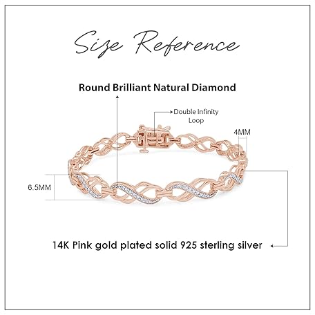 Thông tin sản phẩm Wishrocks 1/10カラット ラウンドカット 天然ホワイトダイヤモンド ダブル インフィニティ ループ ブレスレット レディース ジュエリー スターリングシルバーに14Kゴールドメッキ サイズ- 7クラリティ:I2-I3、色:I-J、0.10カラット, 7.25 inches, 金属, ダイヤモンド