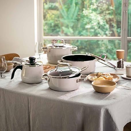 • WMF W0516685290 Single Handled Pot, 5.5 inches (14 cm), Compatible with Gas Fire, Fusion Tech Mineral Multi Pot, Waterless Cooking, Rice, Milky Quartz