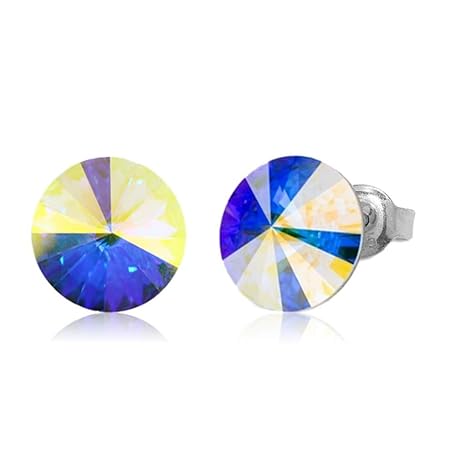 • Women's Earrings, Made with Swarovski, Crystal, Single Grain Silver, Birthday Gift, Women's, Celebration, Simple, Sterling Silver, Swarovski® Crystals