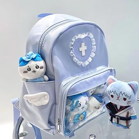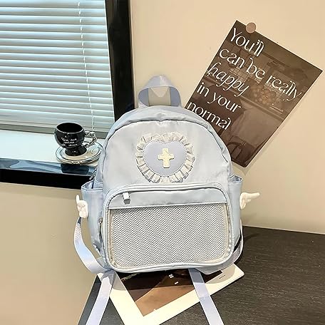 Thông tin sản phẩm Women's Mine-Based Backpack, Pain Bag, Belt, Heart Pattern, Cross, With Feathers, Lace, Cute, Rucksack, Girly Style, Large Capacity, Mass Production, Angel Area, Light Blue, Lolita, Harajuku,