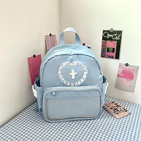 Sản phẩm Women's Mine-Based Backpack, Pain Bag, Belt, Heart Pattern, Cross, With Feathers, Lace, Cute, Rucksack, Girly Style, Large Capacity, Mass Production, Angel Area, Light Blue, Lolita, Harajuku, đang được bán với giá ưu đãi là $17.8215 tại nước Nhật.