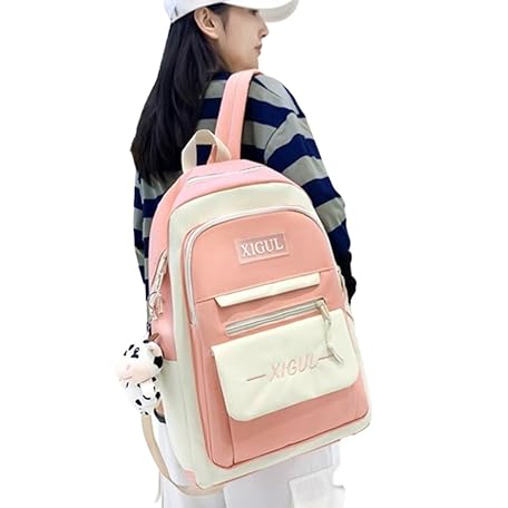Women's Rucksack, Backpack, Canvas, Plain, Cute, Two-tone Color, High School Students, Junior High School, Large Capacity, Campus Backpack, School Commute, Simple