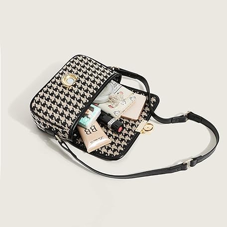 Women's Shoulder Bag Fashion Half Moon Bag Hobo Underarm Purse Tote Handbag Retro Blue Plaid Tweed Houndstooth Grid, Shoulder Bag/Houndstooth, M, Shoulder Bag/Houndstooth
