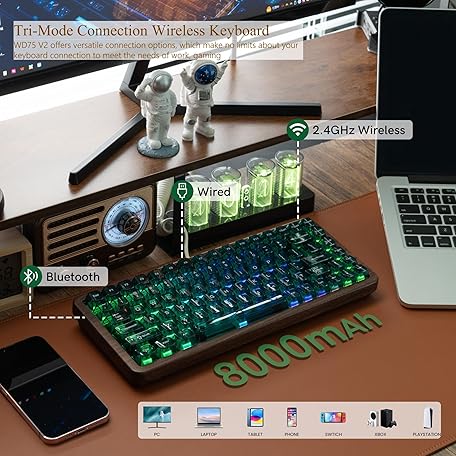 Sản phẩm Womier 75% Keyboard QMK/VIA WD75 Wooden Gaming Keyboard with 8000mAh Battery Tri-Mode Wireless Mechanical Custom Keyboard RGB Hot Swappable with Translucent Clear Key Cap POM Linear Switch đang được bán với giá ưu đãi là $129.2086 tại nước Nhật.